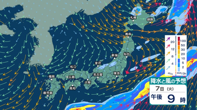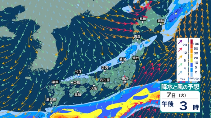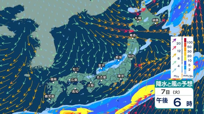 4日(土)は全国的に“春の嵐”か 低気圧が発達し非常に激しい雨? 非常に強い風や高波に注意・警戒【3日(金)~7日(火)の雨シミュレーション・2日午後9時更新】 新潟放送 2026年4月2日(木) 21:00 7日(火)の雨・雪(降水)のシミュレーション