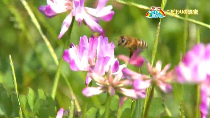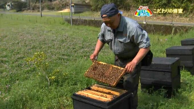 のどかなレンゲ畑で蜂蜜を集めているのは、南九州市知覧町で養蜂園を営む、西垂水栄作さんです。