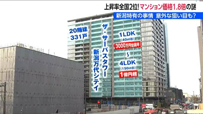 新潟県内のマンションの平均価格が、この10年で1.8倍に値上がりし、上昇率は東京都に次ぐ“全国2位”となっています。