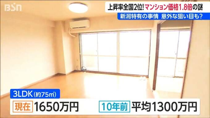 実際、新潟市内の中古マンションは10年前が平均1186万円、現在は平均1532万円と1.3倍の上昇に留まっています。