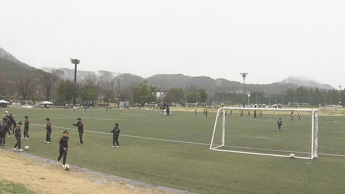 浦部智弘アナウンサー「福島市の十六沼公園サッカー場です。雨が降っていますがピッチでは子どもたちが熱い攻防を繰り広げています」