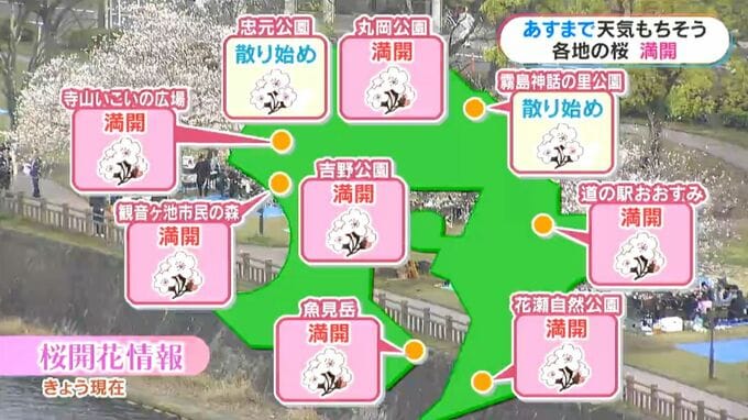 そのほか県内各地の桜の名所もほとんどの所が満開となっています。