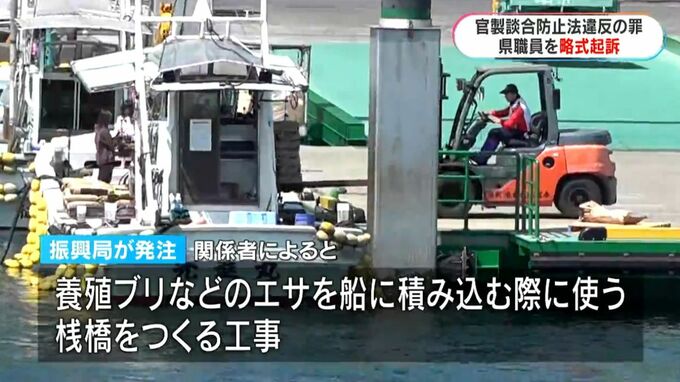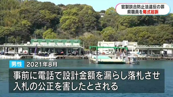 起訴状などによりますと、男性は、2021年8月、県北薩地域振興局で工事の予算確保や設計などを担当。振興局が発注した長島町の港の工事の一般競争入札で、長崎の造船会社に落札させるために事前に電話で設計金額を漏らして落札させ、入札の公正を害したとされています。