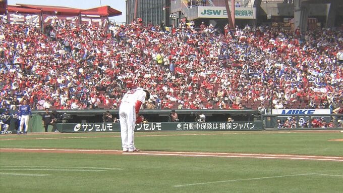 場内アナウンスがこだまする。一塁ライン際で背番号20が深々とお辞儀をする。スタジアムを真っ赤に彩ったファンが見守り、拍手を送る。