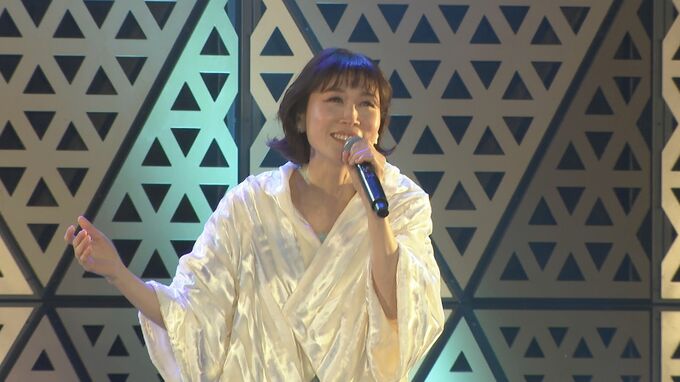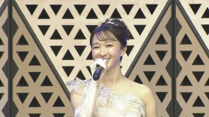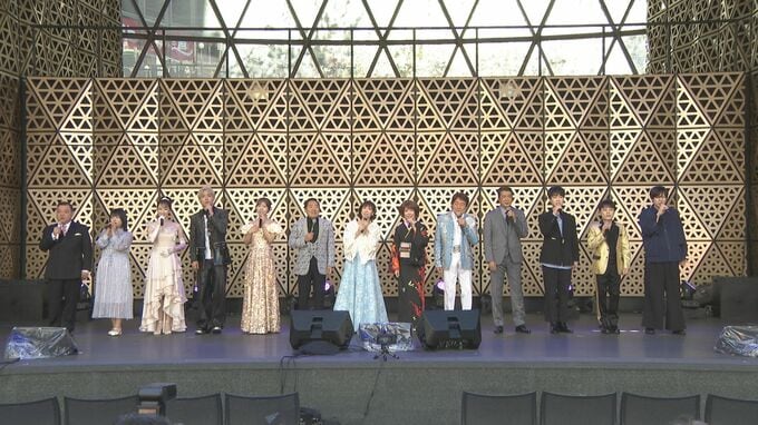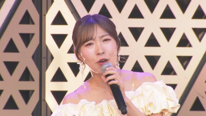宝塚歌劇団・星組娘役スターとして活躍し、6月3日に「さよならは黄昏に」でデビューする有沙瞳さんも、この日初めて新曲を生披露。有沙さんは〝きょう、屋外で初披露ということで携わった皆さんには感謝していますが、きのうは(緊張で)眠れなくて〟と、照れ笑い。有沙さん登場と共に雨も上がり日も差し始め〝こうして野外で歌わせていただくと爽快感と言いますか、ありがたいことに天気にも恵まれまして。気持ちよくここからスタートを頑張りたいです〟と満面の笑みで意気込みを語りました。