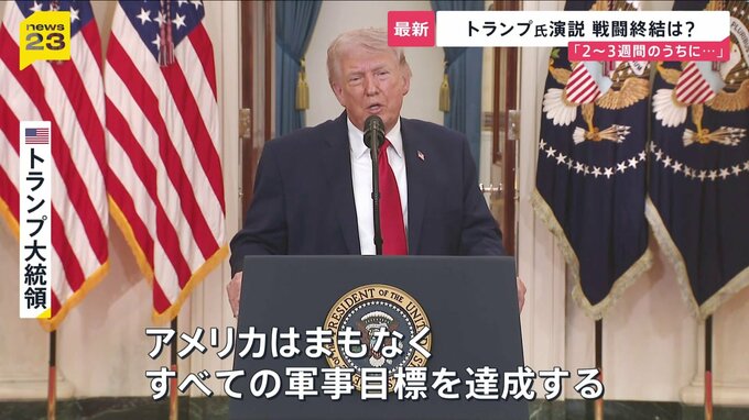 イランとの戦闘をどう終わらせるのか。世界が注目するなか、アメリカ・トランプ大統領が演説を行いました。国民向けに「まもなく軍事目標を達成する」と強調しましたが、肝心の“出口戦略”は示されず、かえって不…