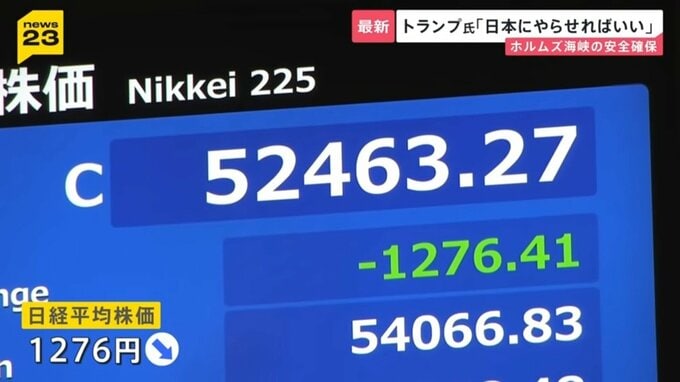 「トランプ大統領の演説を受け、日経平均株価は下げ幅を拡大しています」