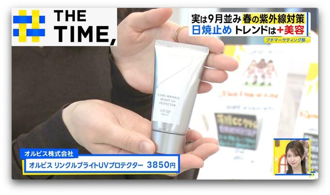 さらに、『オルビス』の新商品「リンクルブライトUVプロテクター」(50g・3850円)は、新機能を搭載し「日差しを浴びると“膜を張ってくれる”アイテム」(@cosme・髙木さん)