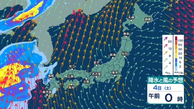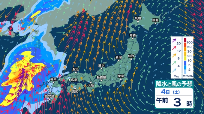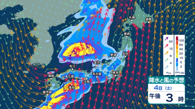 あす4日(土)は西日本で暴風や高波に警戒 大気の状態が非常に不安定で雷を伴う非常に激しい雨となる所も【3日(金)~8日(水)午後3時の雨シミュレーション・3日正午更新】 新潟放送 2026年4月3日(金) 12:00 4日(土)の雨・雪(降水)のシミュレーション