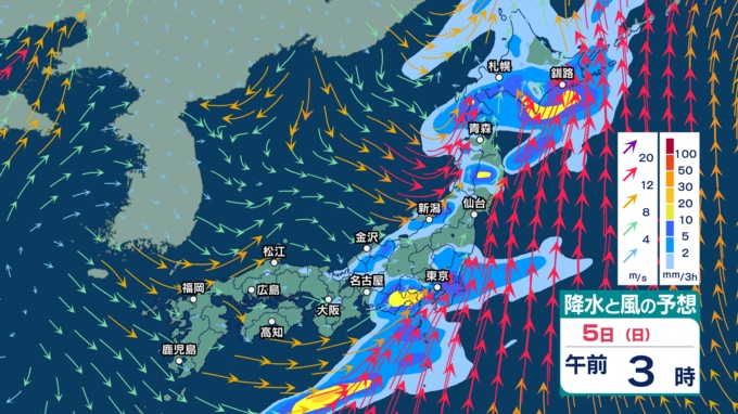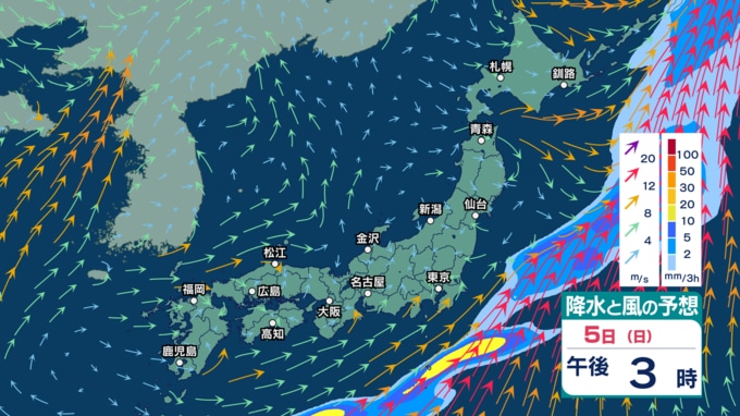 あす4日(土)は西日本で暴風や高波に警戒 大気の状態が非常に不安定で雷を伴う非常に激しい雨となる所も【3日(金)~8日(水)午後3時の雨シミュレーション・3日正午更新】 新潟放送 2026年4月3日(金) 12:00 5日(日)の雨・雪(降水)のシミュレーション