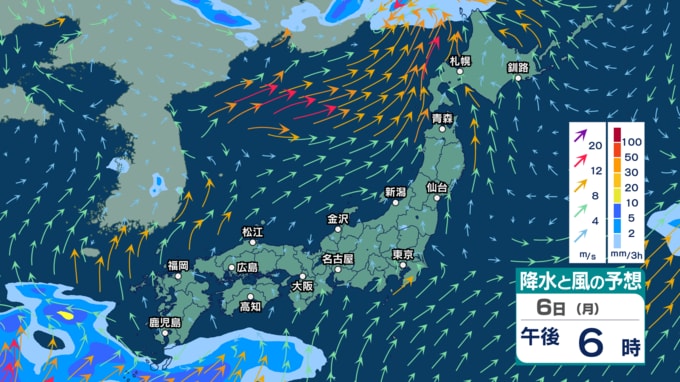 あす4日(土)は西日本で暴風や高波に警戒 大気の状態が非常に不安定で雷を伴う非常に激しい雨となる所も【3日(金)~8日(水)午後3時の雨シミュレーション・3日正午更新】 新潟放送 2026年4月3日(金) 12:00 6日(月)の雨・雪(降水)のシミュレーション
