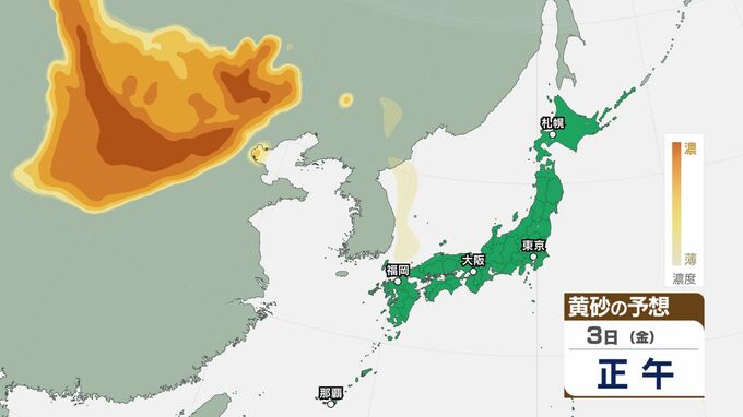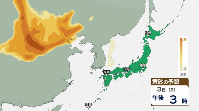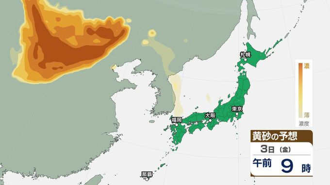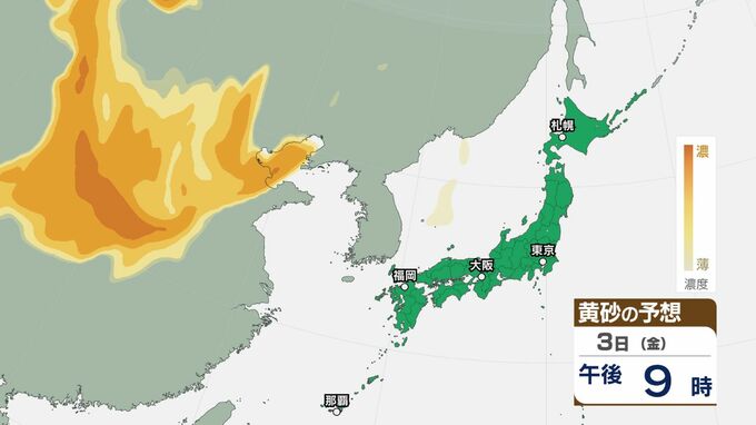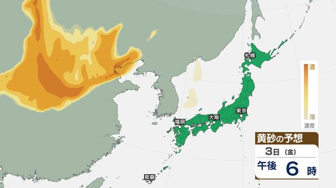 【黄砂情報】日本列島に黄砂が飛来か…5日(日)九州・四国・中国の広い範囲で影響の可能性【気象庁 黄砂シミュレーション/3日現在】 RSK山陽放送 2026年4月3日(金) 12:00 国内 天気 3日(金) 3日(金)~6日(月)黄砂シミュレーション 3日(金)~6日(月)黄砂シミュレーション