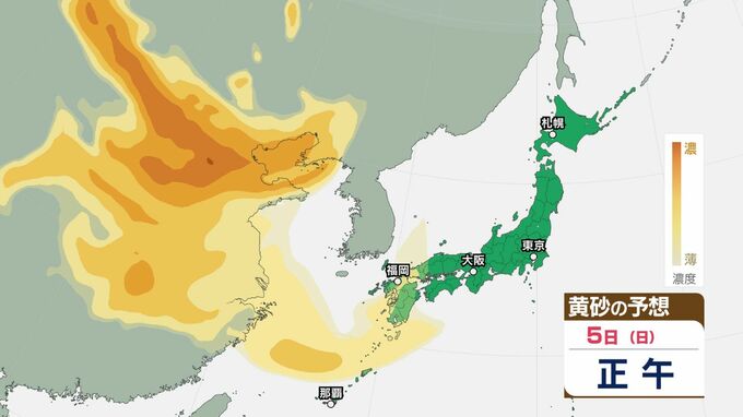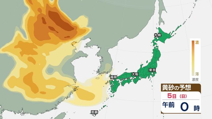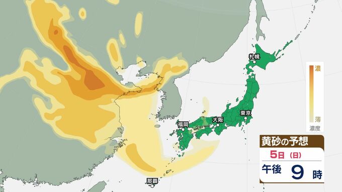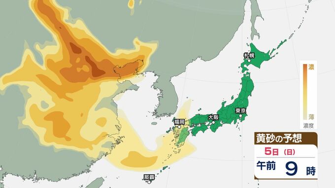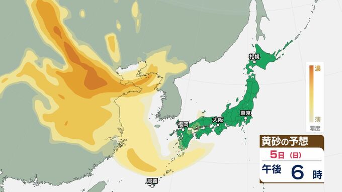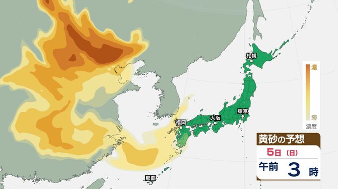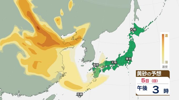 【黄砂情報】日本列島に黄砂が飛来か…5日(日)九州・四国・中国の広い範囲で影響の可能性【気象庁 黄砂シミュレーション/3日現在】 RSK山陽放送 2026年4月3日(金) 12:00 国内 天気 5日(日) 3日(金)~6日(月)黄砂シミュレーション 3日(金)~6日(月)黄砂シミュレーション