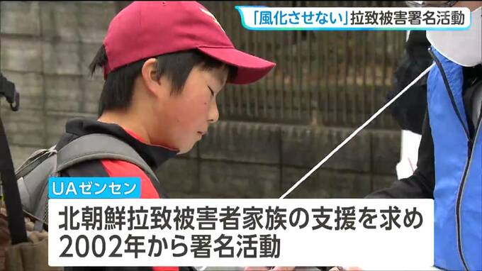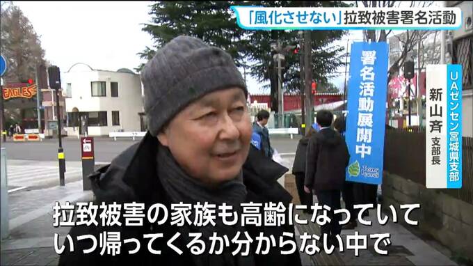 仙台市宮城野区で2日に署名活動を行ったのは、様々な産業で作る労働組合・UAゼンセンの宮城県支部に加盟する組合員約20人です。UAゼンセンは北朝鮮による拉致被害者家族への支援を求めて、2002年から全国の職場や街頭で署名活動を続けています。2日は通りがかった人たちに拉致問題の解決を訴えながら署名を求めていました。