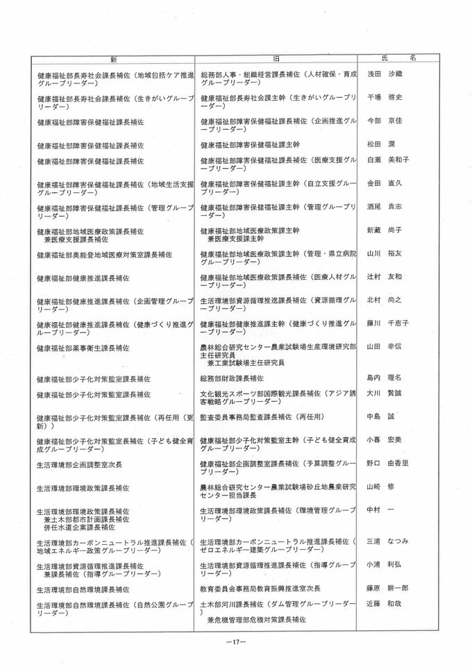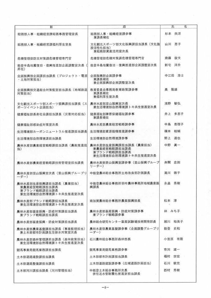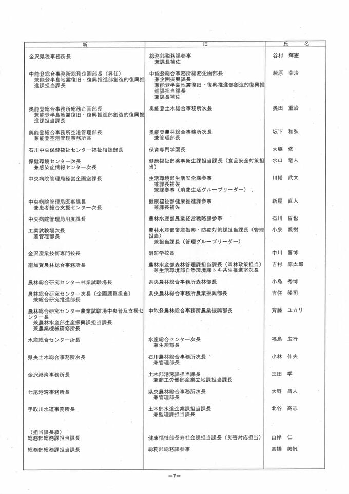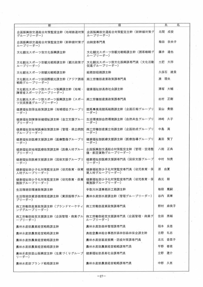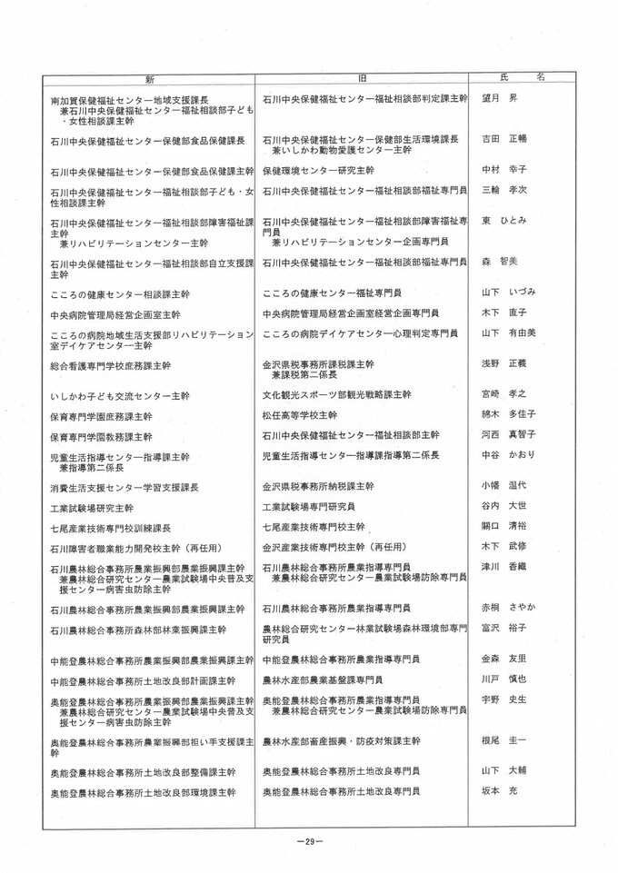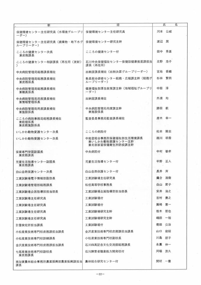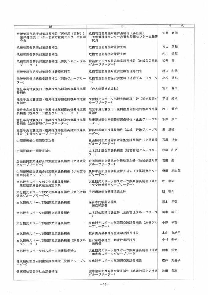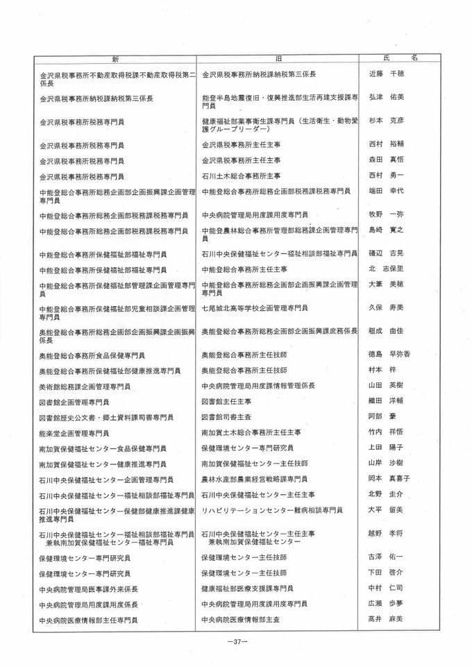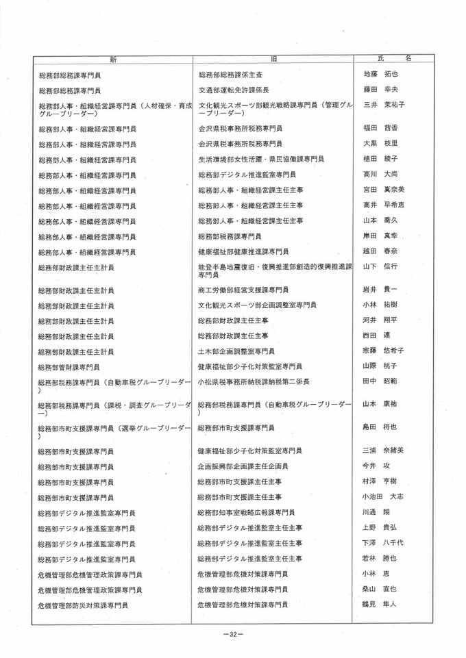 石川県職員・人事異動【2026年4月8日付け】若手や女性を積極登用・地元部長級女性は過去最多3人 北陸放送 2026年4月3日(金) 11:54 国内 【知事部局・役付異動】部長級・次長級・課長級・担当課長級・課参事級・課長補佐級・主幹級・係長級 石川県発表の人事異動より 石川県発表の人事異動より 石川県発表の人事異動より 石川県発表の人事異動より 石川県発表の人事異動より 石川県発表の人事異動より 石川県発表の人事異動より 石川県発表の人事異動より 石川県発表の人事異動より 石川県発表の人事異動より 石川県発表の人事異動より 石川県発表の人事異動より 石川県発表の人事異動より 石川県発表の人事異動より 石川県発表の人事異動より 石川県発表の人事異動より 石川県発表の人事異動より 石川県発表の人事異動より 石川県発表の人事異動より 石川県発表の人事異動より 石川県発表の人事異動より 石川県発表の人事異動より 石川県発表の人事異動より 石川県発表の人事異動より 石川県発表の人事異動より 石川県発表の人事異動より 石川県発表の人事異動より 石川県発表の人事異動より 石川県発表の人事異動より 石川県発表の人事異動より 石川県発表の人事異動より 石川県発表の人事異動より 石川県発表の人事異動より 石川県発表の人事異動より 石川県発表の人事異動より 石川県発表の人事異動より 石川県発表の人事異動より 石川県発表の人事異動より 石川県発表の人事異動より 石川県発表の人事異動より 石川県発表の人事異動より