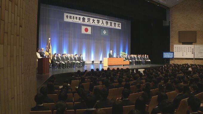 金沢大学には今年、学士課程や大学院など合わせて2875人が入学しました。金沢歌劇座で行われた入学式で、和田隆志学長は「国際社会の一員として果敢に挑戦し、希望ある未来社会に貢献してほしい」と新入生を激励しました。