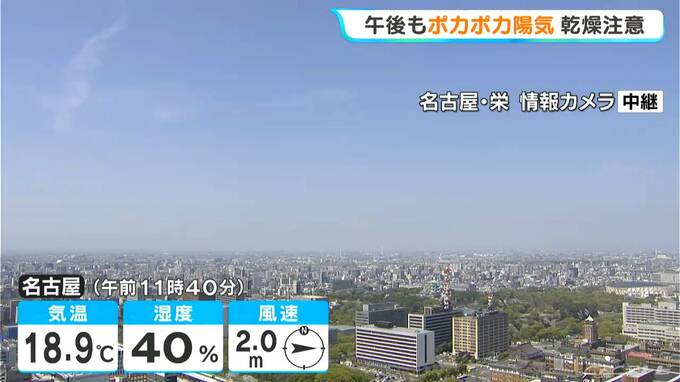 正午前の名古屋市内は、すっきりとした青空が広がっています。この時間の気温は18.9℃で、きのうよりも風は穏やかです。