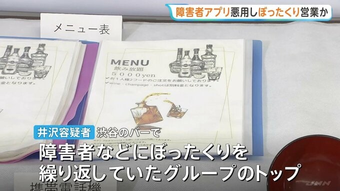 警視庁によりますと、井沢容疑者は渋谷のバーで障害者などにぼったくりを繰り返すグループのトップで、「あなたの支払い対応に時間がかかり、別の客の予約がキャンセルになった」などとうそを言い、損害金名目で現金などを支払わせていました。