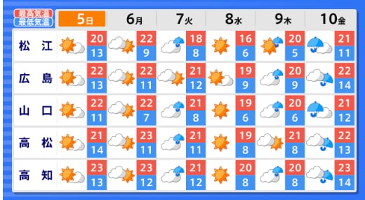 【黄砂情報】5日~6日かけ九州地方、中国地方に黄砂飛来か...4日~6日の黄砂シミュレーション いつどこに、どれくらい飛んでくる? 黄砂を上空から見たデータで確認 気象庁発表 全国の天気を画像で テレビユー山形 2026年4月3日(金) 15:00 国内 ■全国の天気を地方ごとに(画像) 画像はTBS NEWS DIG Powered by JNNより 画像ありの記事を最初から https://newsdig.tbs.co.jp/articles/-/2576505?display=1