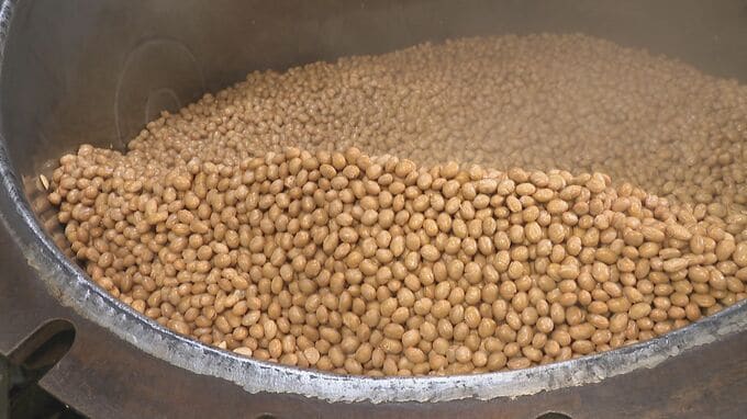 日本一の納豆作りは、原料の大豆を専用の圧力釜で蒸す作業から始まります。こだわりのポイントは?