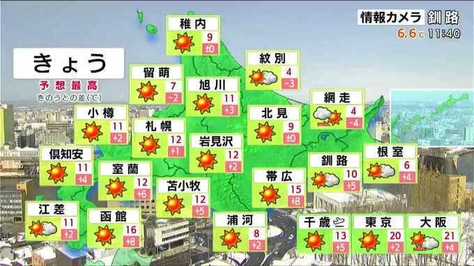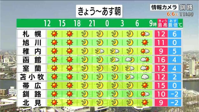 3日の釧路の最高気温は10℃予想で、前日に降った雪はすぐにとけてしまいそうです。