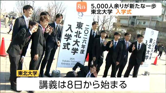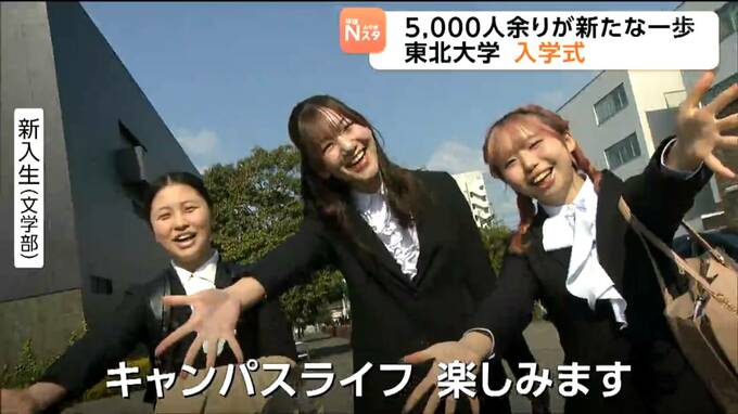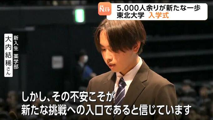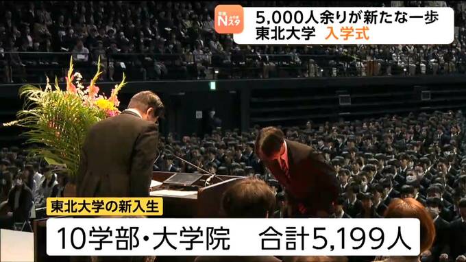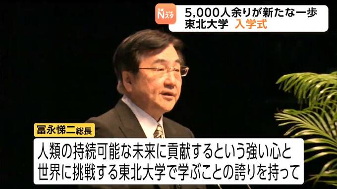 東北大学の入学式が仙台市内で開かれ、新入生5000人余りが新たな生活の第一歩を踏み出しました。