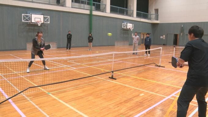 「ピックルボールって言います。バドミントンのサイズのコートで、テストと卓球を混ぜたようなゲーム」