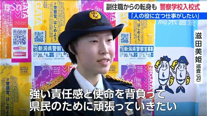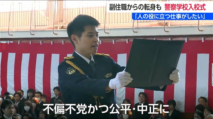 新潟県警察学校の入校式が3日行われ、127人が新たな一歩を踏み出しました。中には、寺の副住職から警察官に転身した男性も…