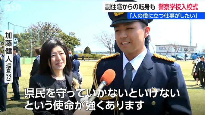 初任科生を代表して決意を述べた沼崎泰我巡査(27歳)は会社員を経て実家の寺で副住職を務めた後、夢だった警察官になりました。