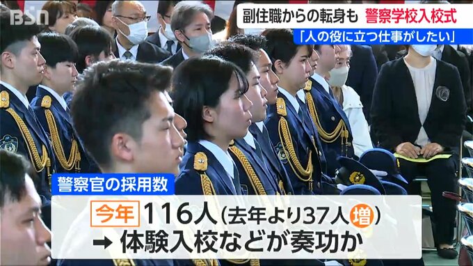 今年の警察官の採用は116人で、前年より37人増えていて、警察は警察学校の体験入校など志願者を増やすための取り組みが功を奏したとみています。