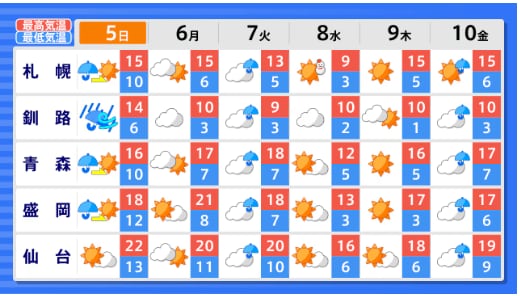 平均気温は高い見込み...東北地方の向こう1か月(4/4~5/3)の天候の見通しは? 平均気温・降水量・日照時間は? 東北・全国の天気を画像で 気象庁 テレビユー山形 2026年4月3日(金) 16:02 国内 ■全国の天気を地方ごとに(画像) 画像はTBS NEWS DIG Powered by JNNより 画像ありの記事を最初から https://newsdig.tbs.co.jp/articles/-/2577210?display=1
