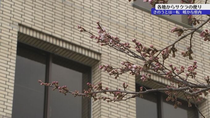 各地で2月並みの寒さとなった2日とは一転、3日の岩手県内は4月上旬から5月中旬並みまで気温が上がり各地からサクラの便りが届きました。