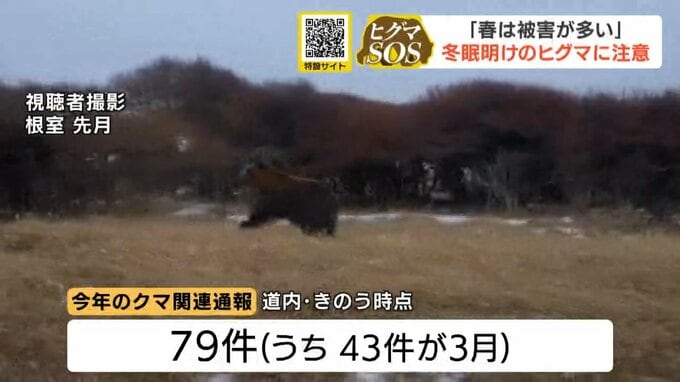 2026年に入り、北海道内で警察に寄せられたクマに関する通報は、2日の時点で79件。このうちの43件が3月です。