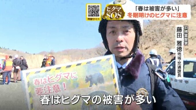 「春はヒグマの被害が多い。ヒグマを目撃したり、足跡や糞を見つけたら、すぐに警察や管轄する役場へ通報をお願いします」