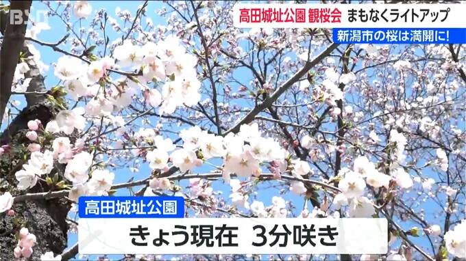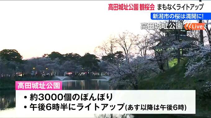 “日本三大夜桜”として知られ、去年は50万人の花見客が訪れた 新潟県上越市の高田城址公園で、4月3日から観桜会が始まりました。