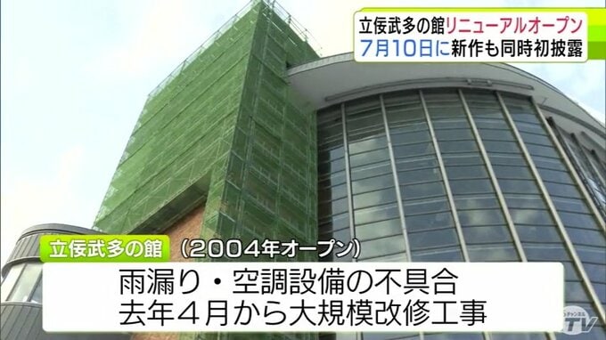 オープンから20年以上経過した五所川原市の「立佞武多の館」は、雨漏りや空調設備の不具合を受け、2025年4月から改修工事が進められていて、2日の市の会見で7月10日のリニューアルオープンが明らかにされました。