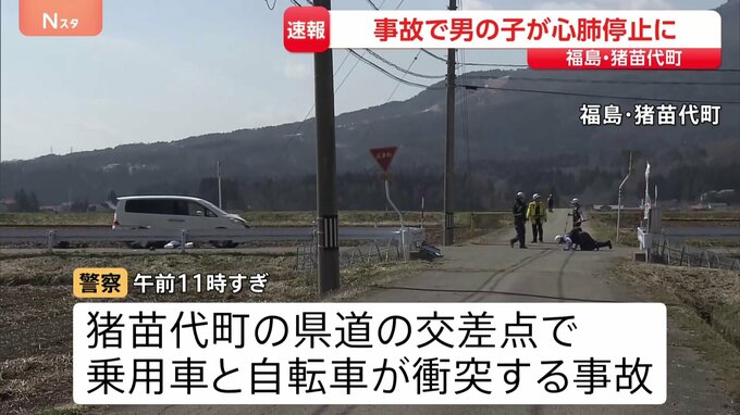 きょう午前、福島県猪苗代町で乗用車と自転車が衝突する事故があり、小学生とみられる男の子が心肺停止の状態で病院に運ばれました。記者「事故があったと思われる交差点です。現場には男の子が乗っていたとみられ…