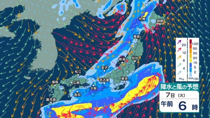 非常に激しい雨や暴風・高波の恐れも 4~5日は土砂災害や低い土地の浸水などに注意・警戒 5日は西日本に黄砂も飛来?【4日(土)~8日(水)の雨シミュレーション・3日午後9時更新】 新潟放送 2026年4月3日(金) 21:00 7日(火)の雨・雪のシミュレーション