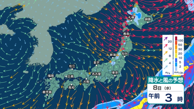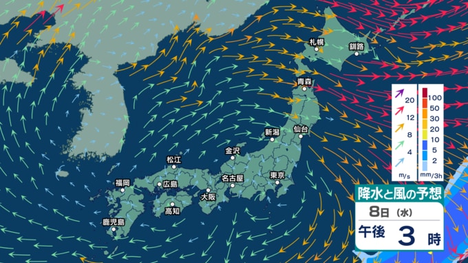 非常に激しい雨や暴風・高波の恐れも 4~5日は土砂災害や低い土地の浸水などに注意・警戒 5日は西日本に黄砂も飛来?【4日(土)~8日(水)の雨シミュレーション・3日午後9時更新】 新潟放送 2026年4月3日(金) 21:00 8日(水)の雨・雪のシミュレーション