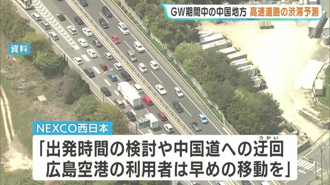 NEXCO西日本中国支社は渋滞予測を考慮した出発時間の検討や中国道への迂回、広島空港の利用者に対しては、早めの移動を呼びかけています。