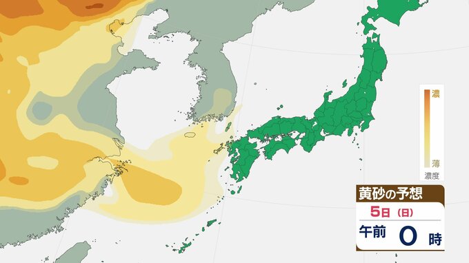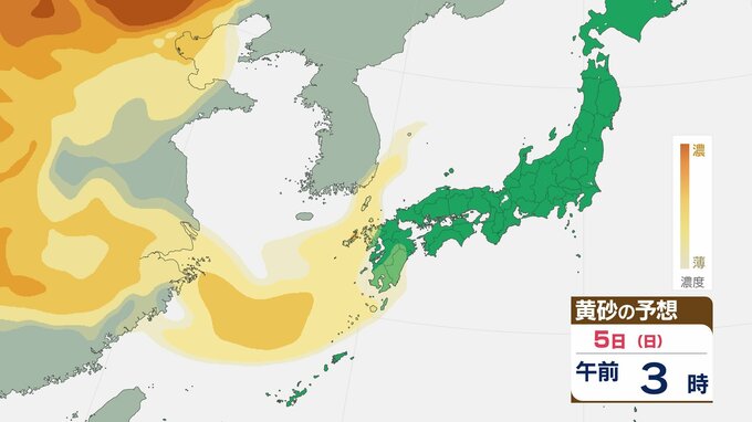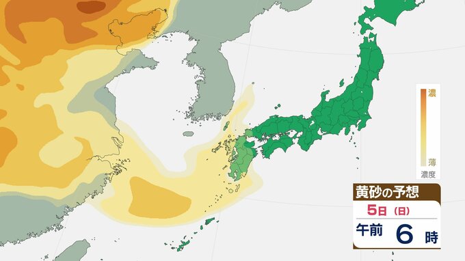 【黄砂情報】大陸からの黄砂は5日(日)以降九州などに飛来する見込み 飛来予想シミュレーション 北陸放送 2026年4月3日(金) 18:06 国内 5日(日)以降、九州を中心に黄砂が飛んでくる見込みです。 黄砂の予想ですが、5日ごろから九州など西日本で飛来する見込みです。 6日(月)は、中国地方の一部にも黄砂は達する見込みです。