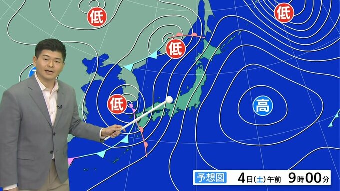 あす4日(土)は、低気圧や前線がやや発達しながら日本付近を通過してきます。西日本から東北の広い範囲で雨や風が強まり、警報級の大雨や暴風となるおそれがあります。東京など関東は、早ければ朝から雨が降り、昼過ぎ以降は本降りとなる見通しです。