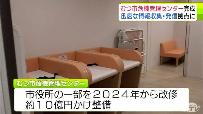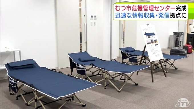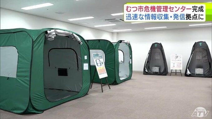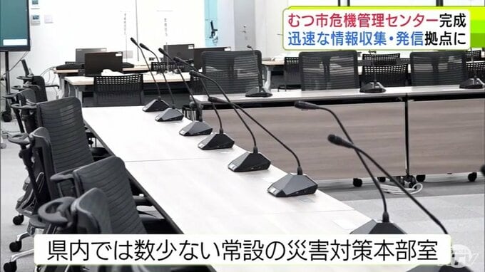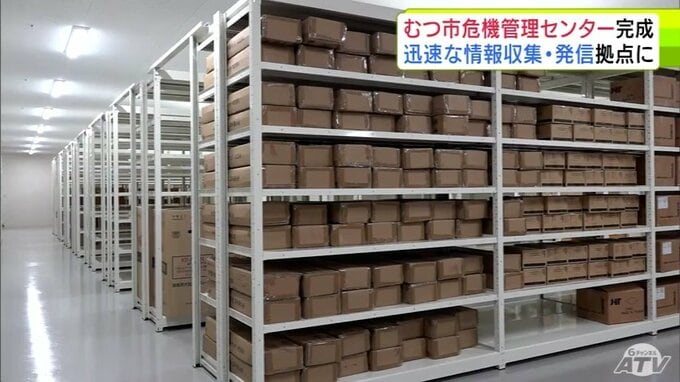 総事業費約10億円かけた むつ市の危機管理センター完成 備蓄倉庫や常設の災害対策本部室などを装備 災害現場の映像・情報を12画面モニターで共有も