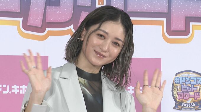 モデルでタレントのみちょぱこと池田美優さんが、「#ドンコスヒットアワード 2026SS」に登壇しました。みちょぱさんは今年2月、夫でタレントの大倉士門さんとの間に第1子を妊娠したことを発表しており、この日は花柄の黒ワンピースに、お腹が隠れるほどの白のジャケットを合わせて登場しました。