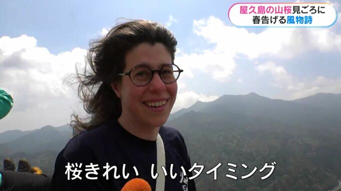 「(屋久島は)きょう初めて。うれしい、いい天気。桜きれい、いいタイミング、春は一番好きな季節」