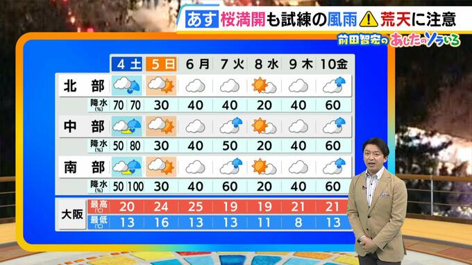 4月4日(土)の近畿地方は、満開の桜に試練の風雨。荒れた天気に注意が必要です。発達した低気圧が日本海を進むでしょう。近畿地方は夜にかけてこの低気圧からのびる前線が通過する見込みです。海沿いの地域を中心…