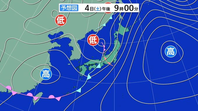 「低気圧」が発達しながら日本海を進みます。「低気圧」から延びる前線が本州を通過し、神奈川県では「大雨警報」と「波浪警報」が、千葉県では「暴風警報」が発表される可能性があります。