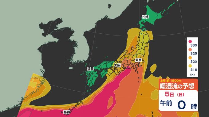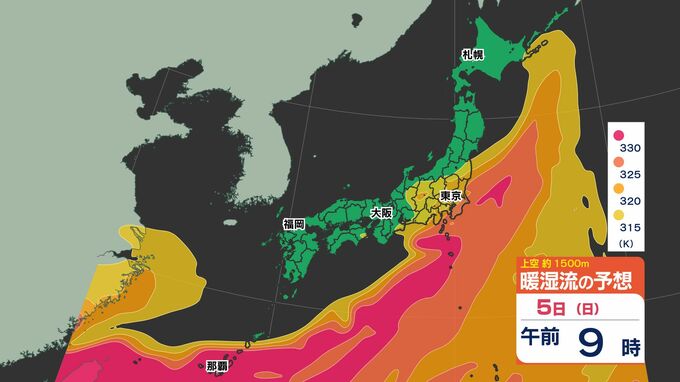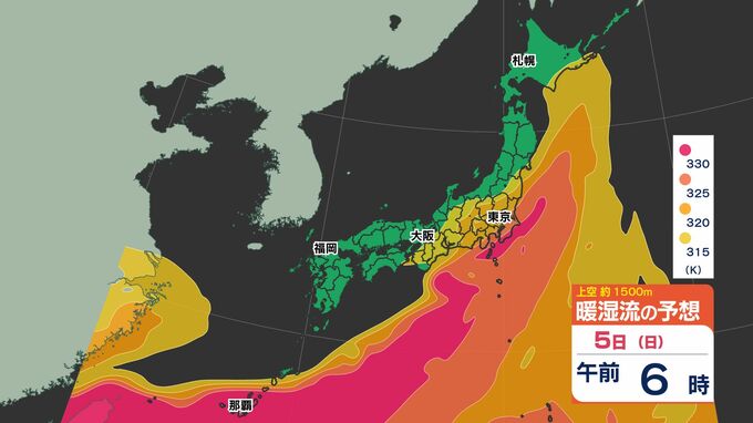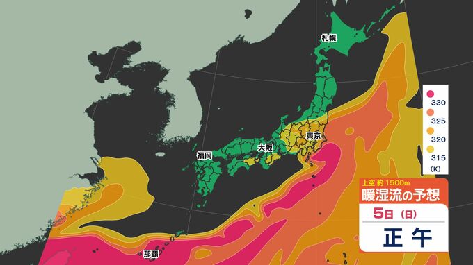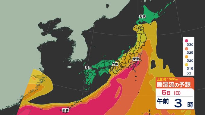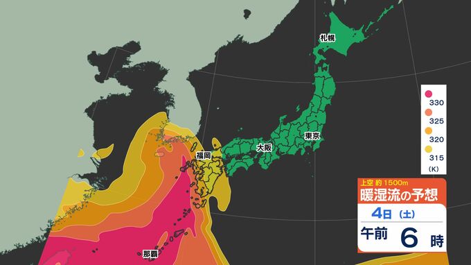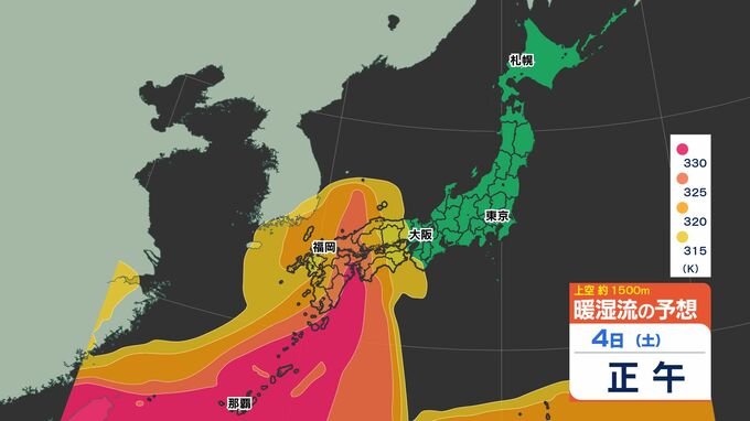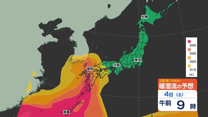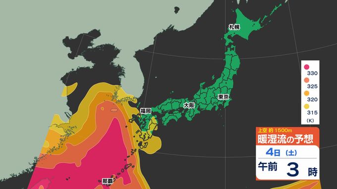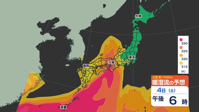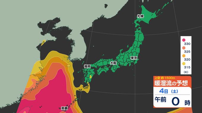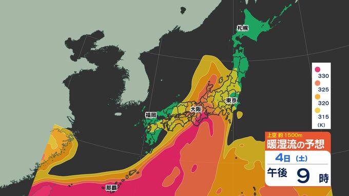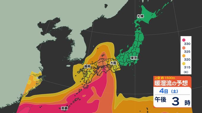 【東京首都圏 荒れた天気】さくらには「試練の雨と風」【雨と風シミュレーション4日(土)5日(日)/週間予報】東京・神奈川・埼玉・千葉・群馬・栃木・茨城・長野・山梨 南日本放送 2026年4月3日(金) 21:00 国内 天気 暖湿流のシミュレーション4日(土)5日(日) 天気予報でよく耳にする「暖かく湿った空気」のシミュレーションです。少し専門的ですが、梅雨の時期にみられるような「暖湿流(330K以上)」が入ってくる予想のため、「大雨警報」発表の可能性があります。