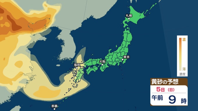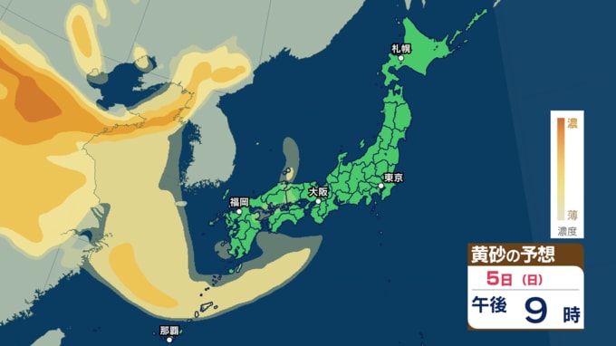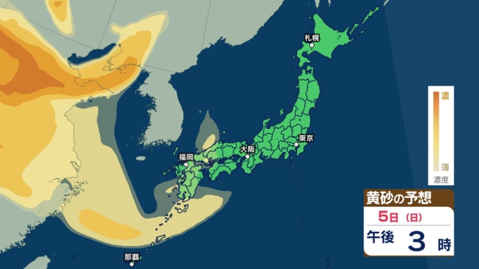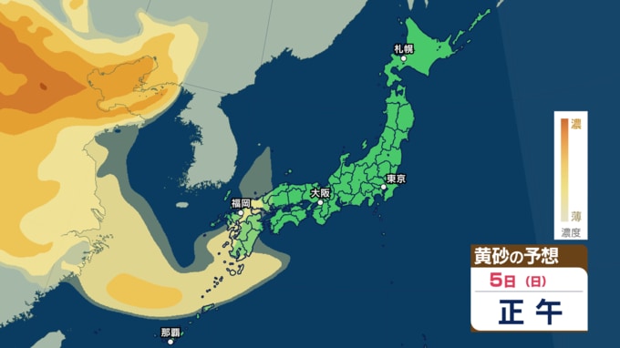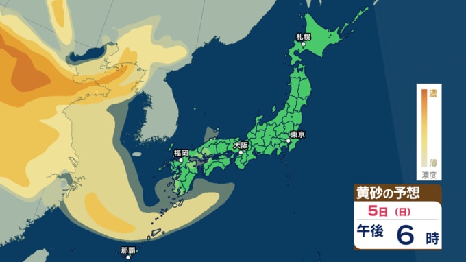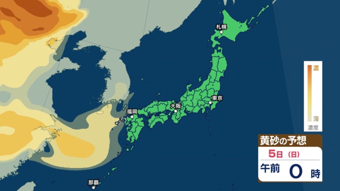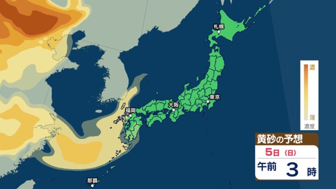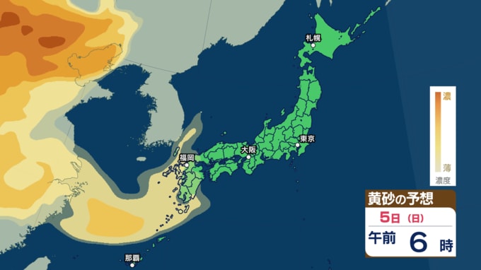 【黄砂情報】日本に黄砂飛来か【黄砂シミュレーション4日(土)~5日(日)/ 全国各都市の週間予報】気象庁 黄砂情報