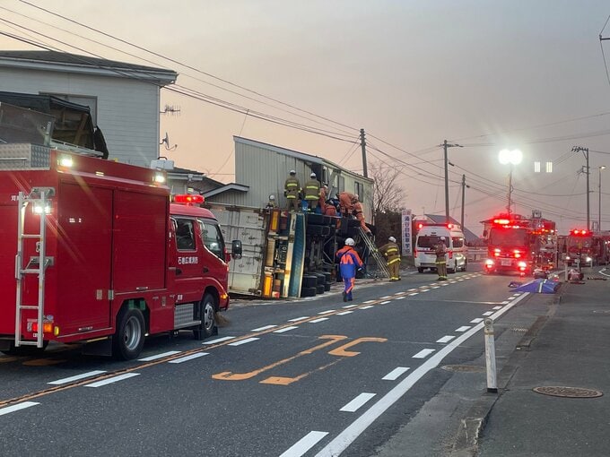 4日午前2時55分頃、宮城県石巻市前谷地の国道108号上で大型トレーラーが横転していると近くの住宅に住む人から消防に通報がありました。